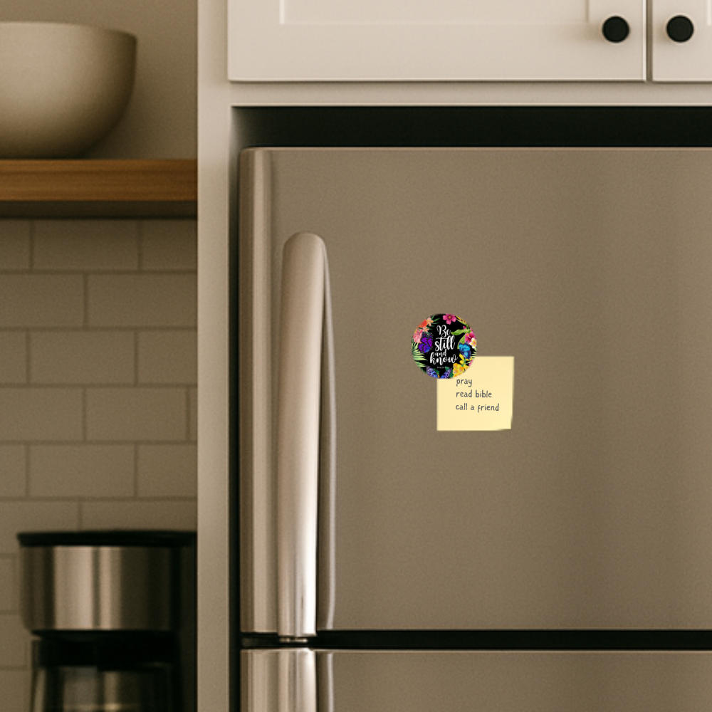 Place this daily reminder where you’ll see it most. Our floral “Be still and know” round magnet steadies your heart and neatly holds notes, photos, and prayer cards.