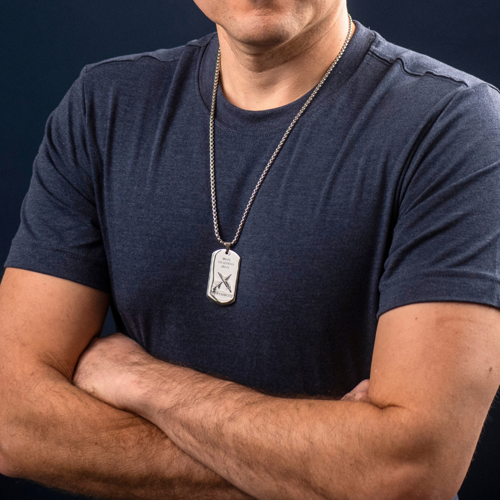 Discover our Iron Sharpens Iron Dog Tag Necklace, a powerful accessory etched with the wisdom of Proverbs 27:17.