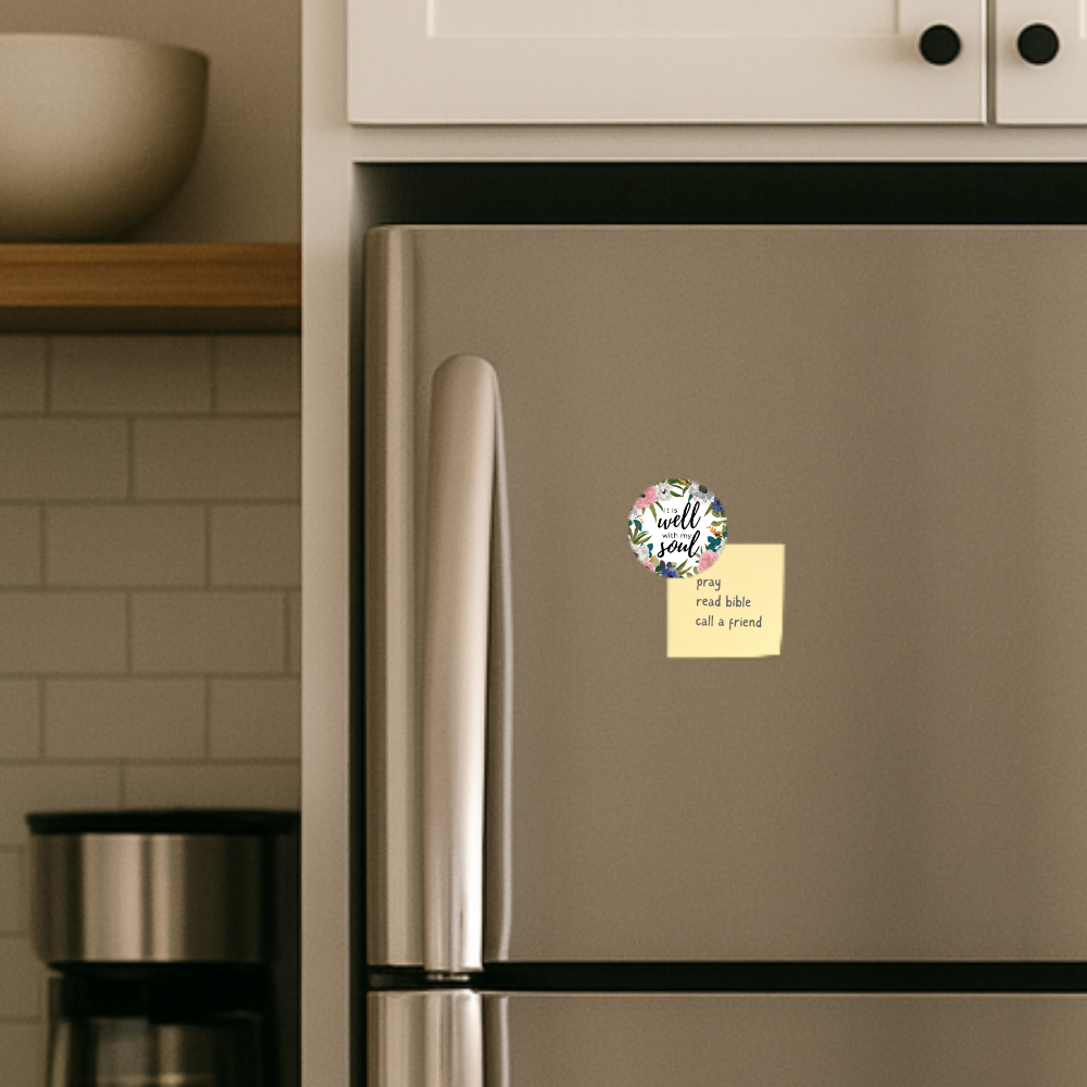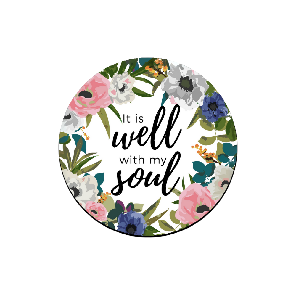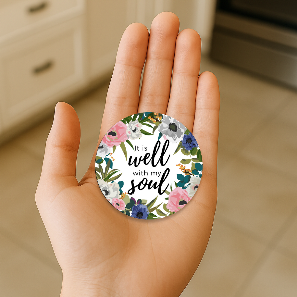 Place this daily reminder where you’ll see it most. Our floral “It is well with my soul” round magnet steadies your heart and neatly holds notes, photos, and prayer cards.