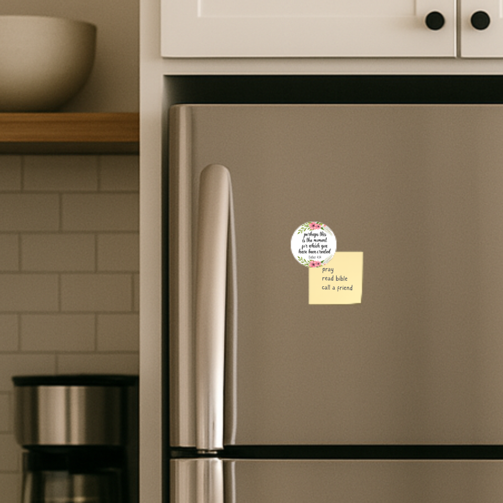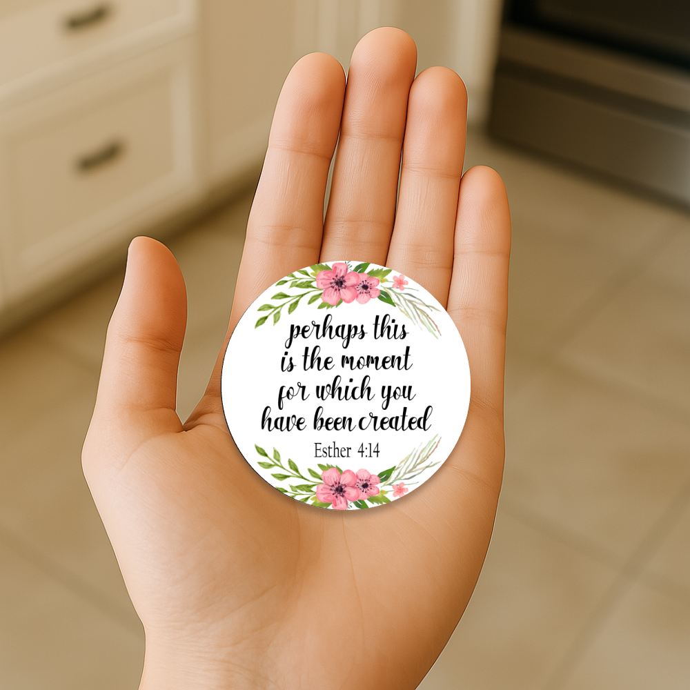 Place this daily reminder where you’ll see it most. Our floral “Perhaps this is the moment” round magnet steadies your heart and neatly holds notes, photos, and prayer cards.